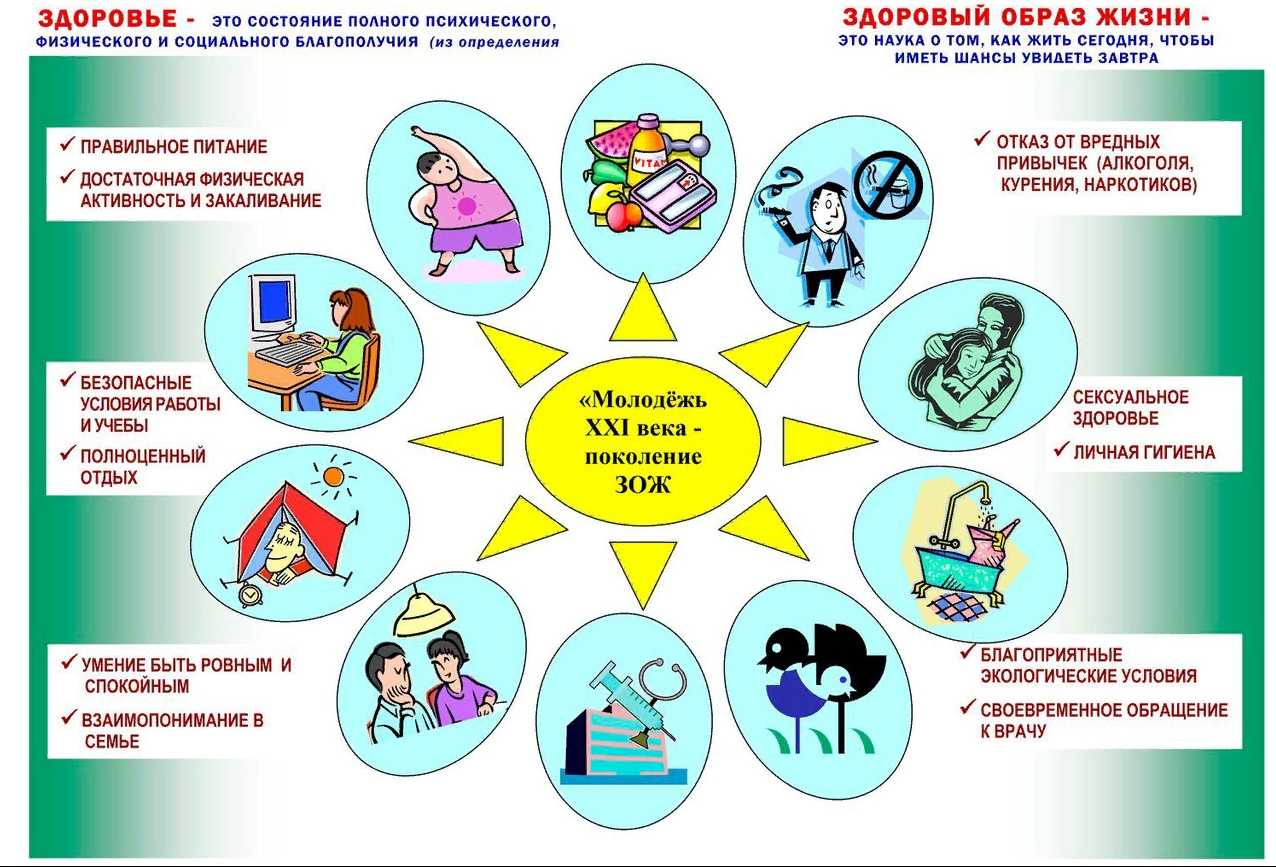 Сюда входит множество различных факторов: грамотно выстроенный режим отдыха, соблюдение гигиены и психогигиены, правильное питание. Напротив, антиподы здорового образа жизни — это вредные привычки. Курение, алкоголь, наркотики и другое. Но вредные привычки могут быть не только явными. Например, это может быть приверженность к сидячему образу жизни. А как показывает практика, одна вредная привычка “тянет” за собой другую, другую и так может продолжаться до бесконечности. К сожалению, привить студентам системное поддержание ЗОЖ только на основании того, что это полезно для здоровья — довольно проблематично. Поэтому необходима пропаганда здорового образа жизни, физической культуры и спорта как фактора не только поддержание здоровья, но и выработки воли, ловкости, мужества и т.д.