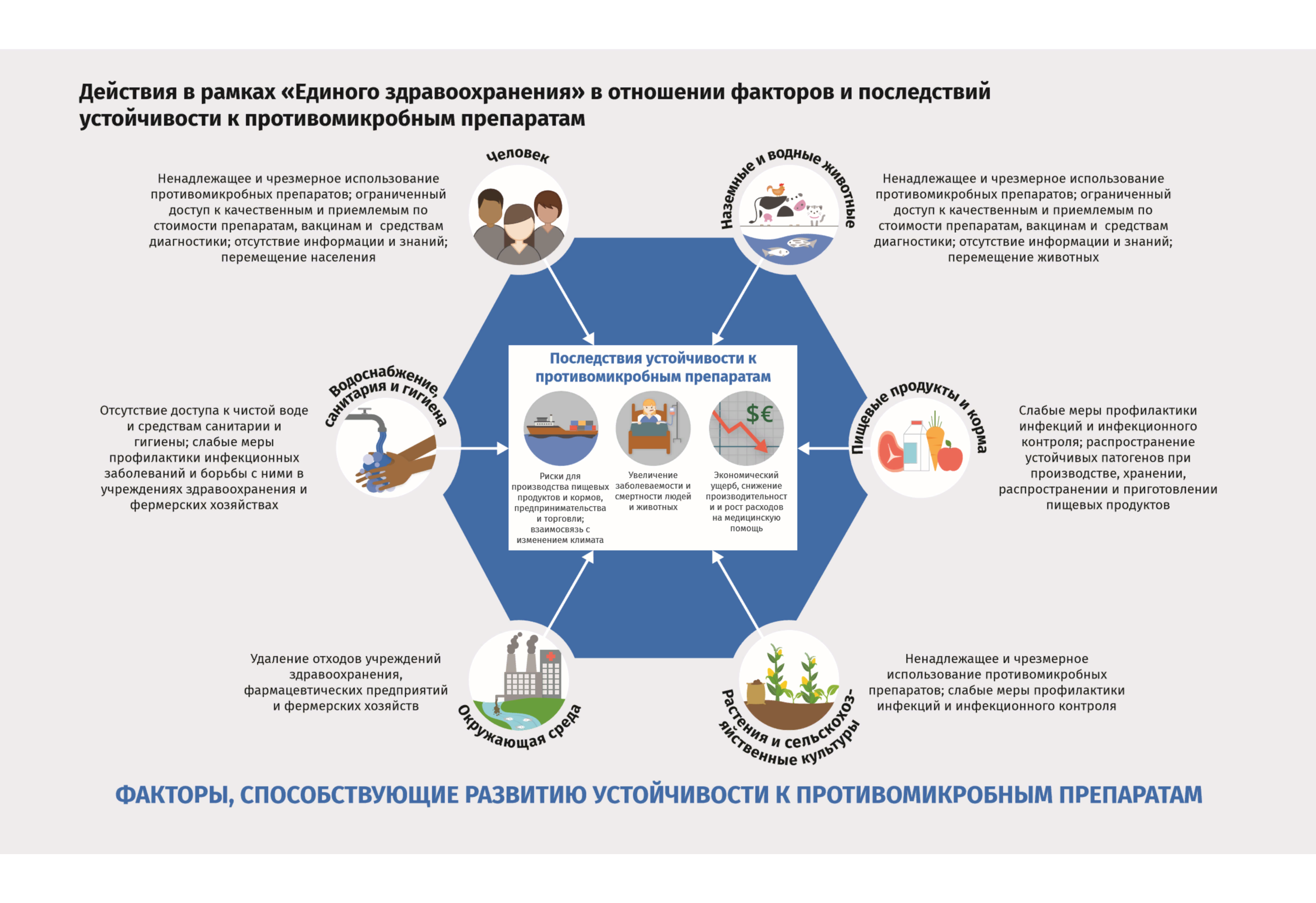Антибиотикорезистентность представляет угрозу не только для здоровья человека, но и для животных, растений и окружающей среды в целом. Эффективно противостоять этой проблеме можно лишь сообща, в тесном межотраслевом сотрудничестве.