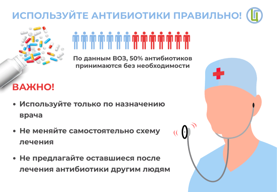 1. Принимать антибиотики только по назначению врача.